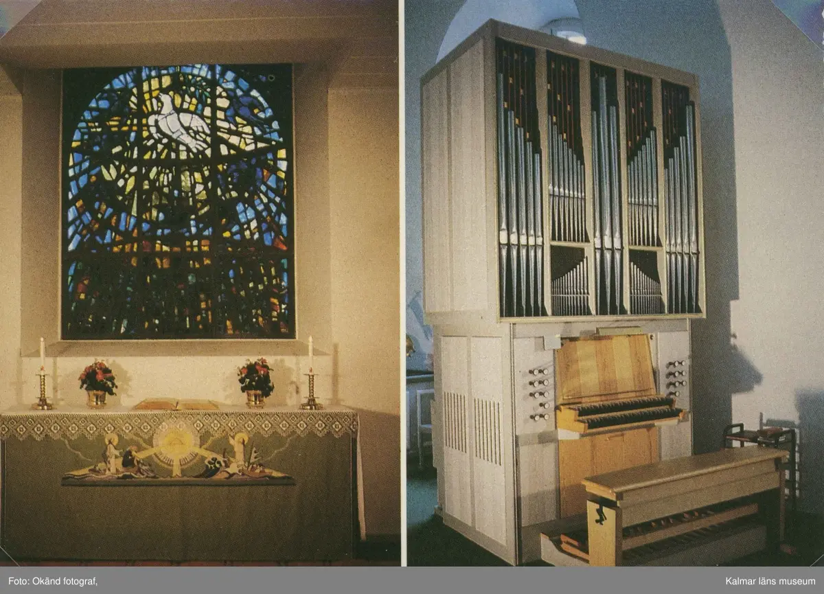 Interiör från Gamleby kyrka. Altaret till vänster och orgeln från Mårtenssons orgelfabrik i Lund.