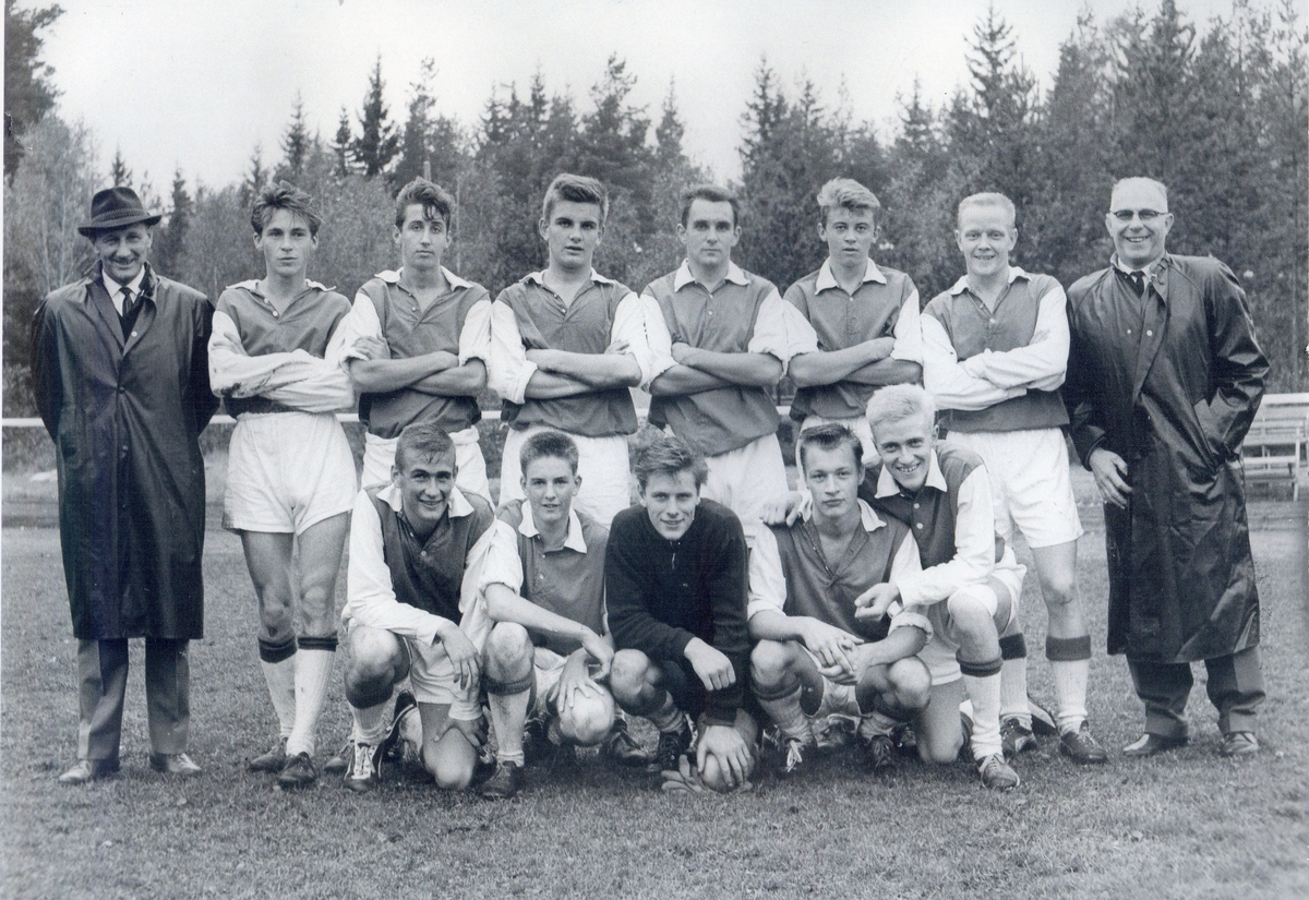 Fotbollsspelare vid Hovmantorp idrottsplats cirka 1960.