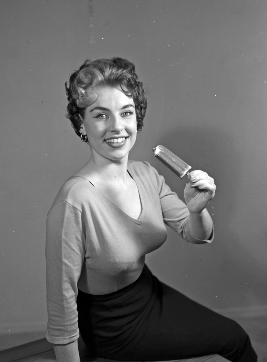 Reklambild, kvinna med glasspinne