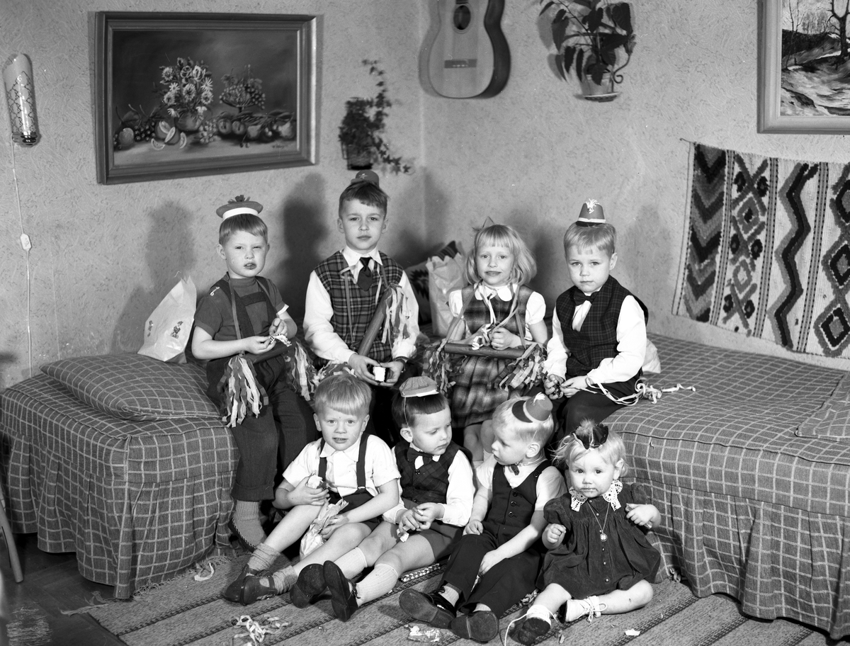 Barn med festhattar och smällkarameller