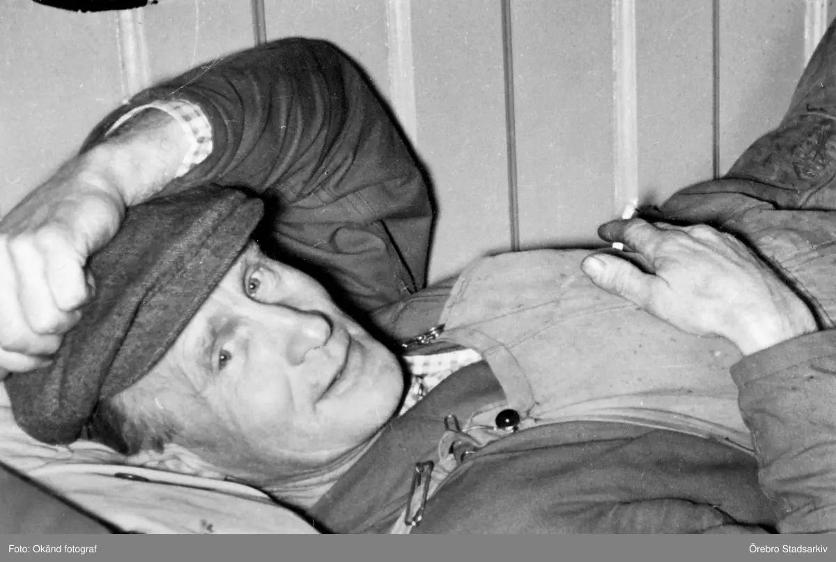 Banarbetare Bäckström vilar på soffan, 1950-tal
