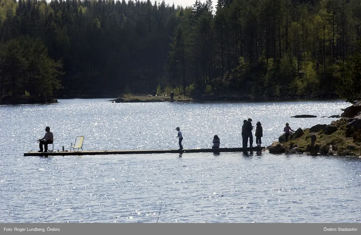 Fiskare och badande på brygga i Kilsbergen, 2004