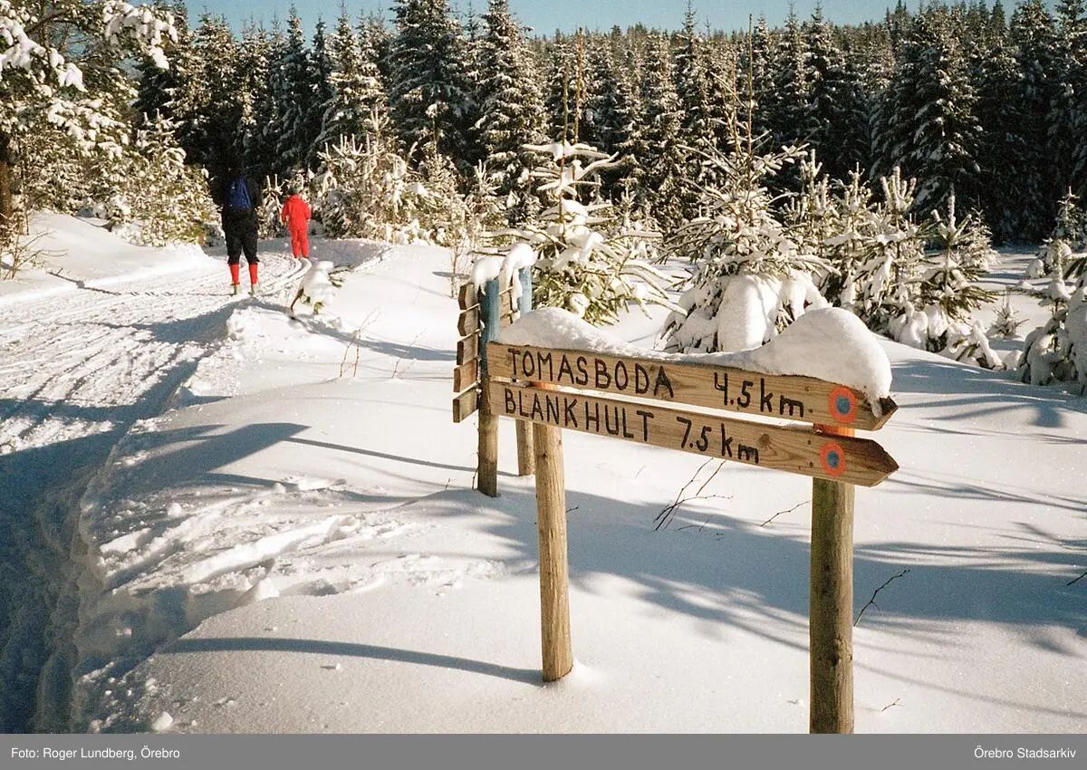 Skidåkare vid vägvisare i Kilsbergen, 2004