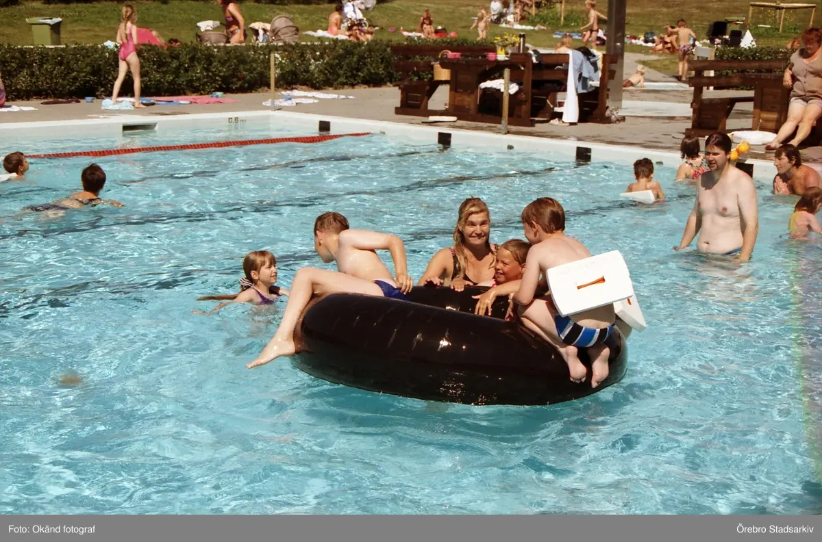 Traktorhjul med badgäster i Varbergabadet, 1990-tal