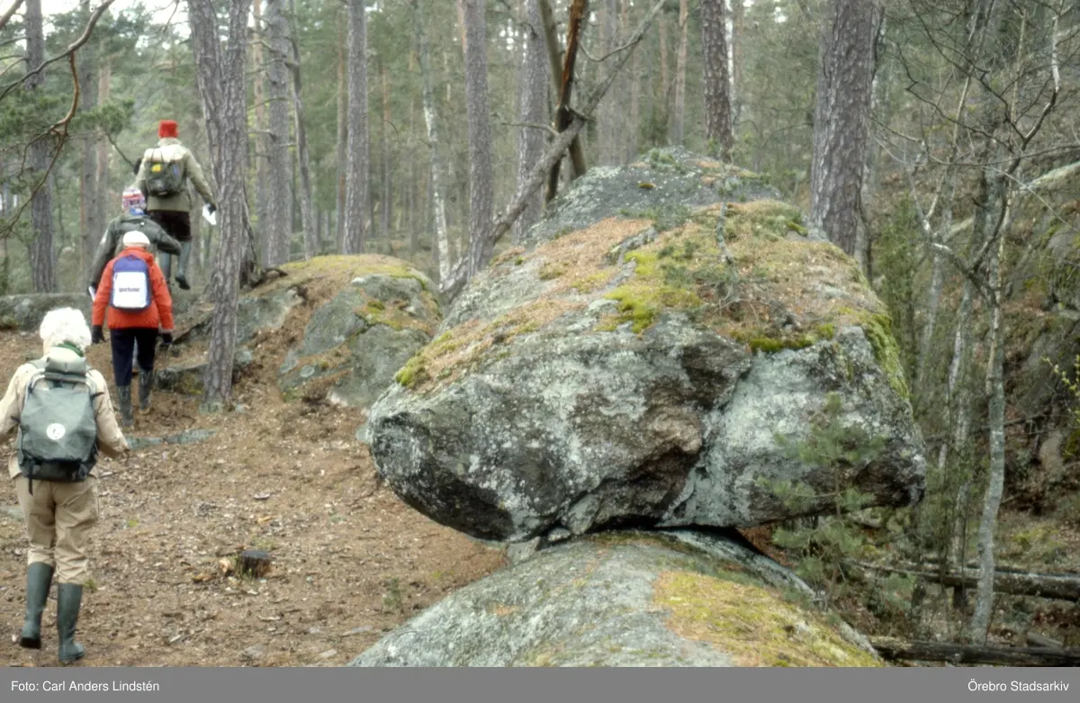Barn vid stenblock vid Östgötaviken i Tivedens Nationalpark, 1989