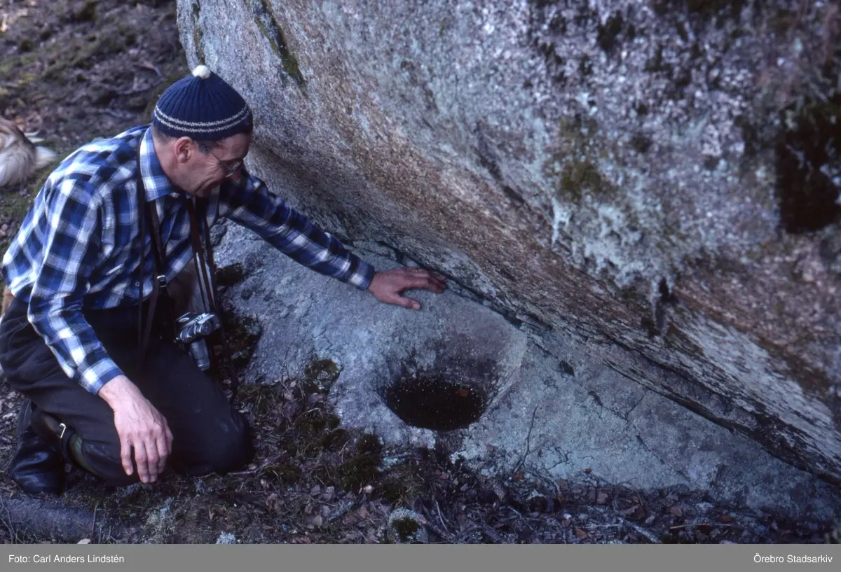 Man vid jättegryta i Storesjöområdet i Tivedens Nationalpark, 1984