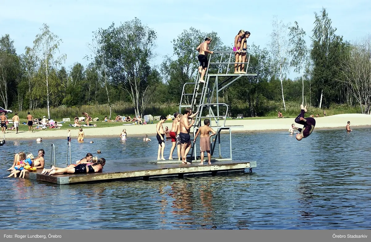 Badande på hoppbrygga i Alnängsbadet, 2004