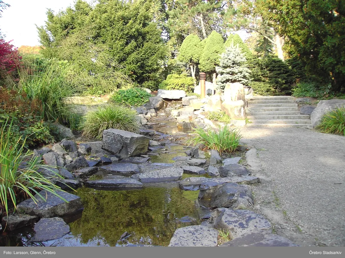 Damm med ett litet vattenfall i Stadsparken, 2005