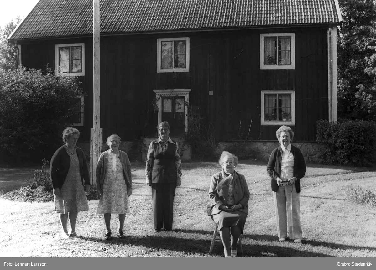 Grupp på gårdsplanen på Fjärndeln i Hovsta, 1981