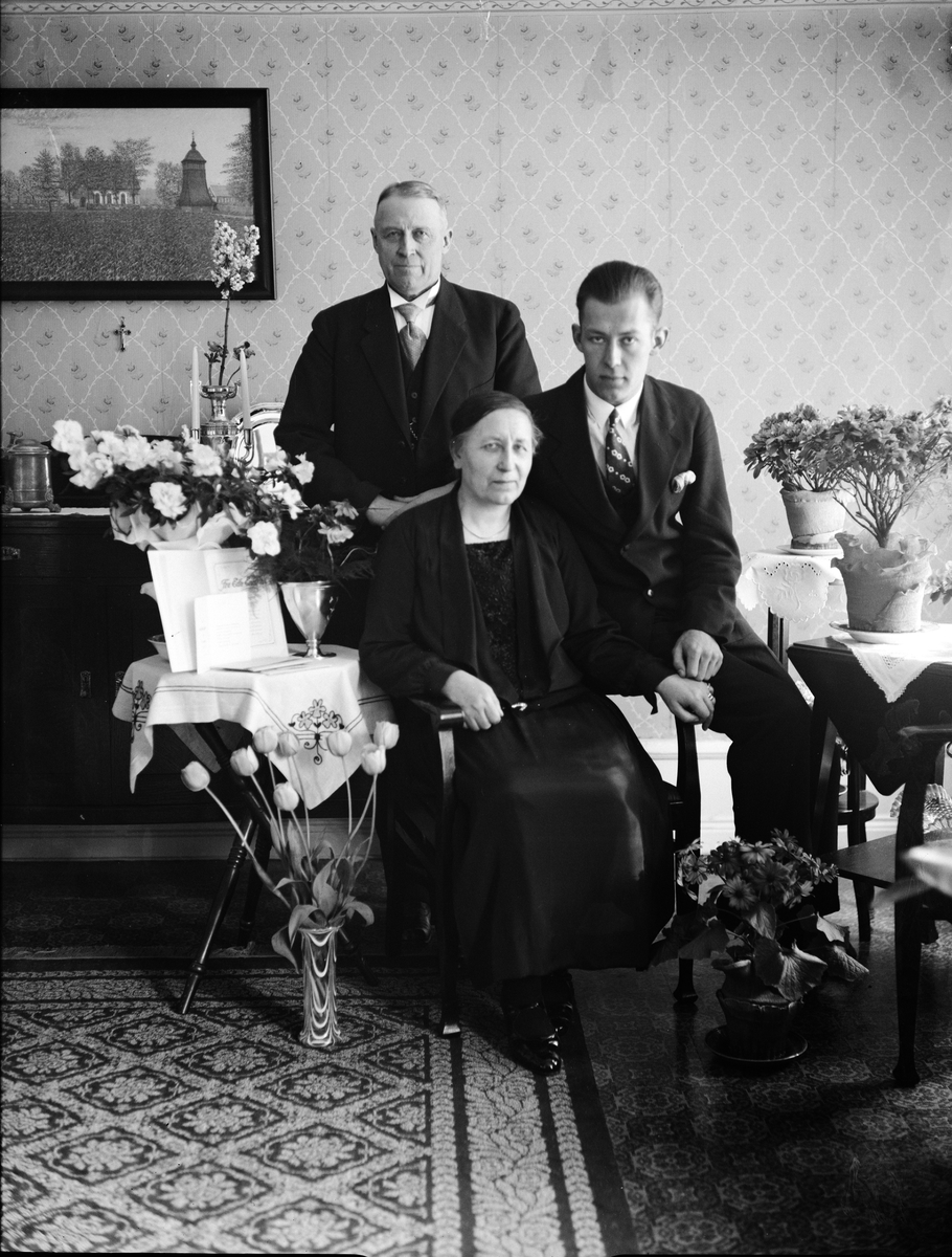 Födelsedagsporträtt - Edla Eriksson med make och son, Fyrisgatan 3, Uppsala