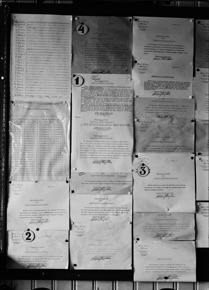 Anslagstavla i spårvagnstallarna, kvarteret Ramund, Dalgatan, Uppsala 1941