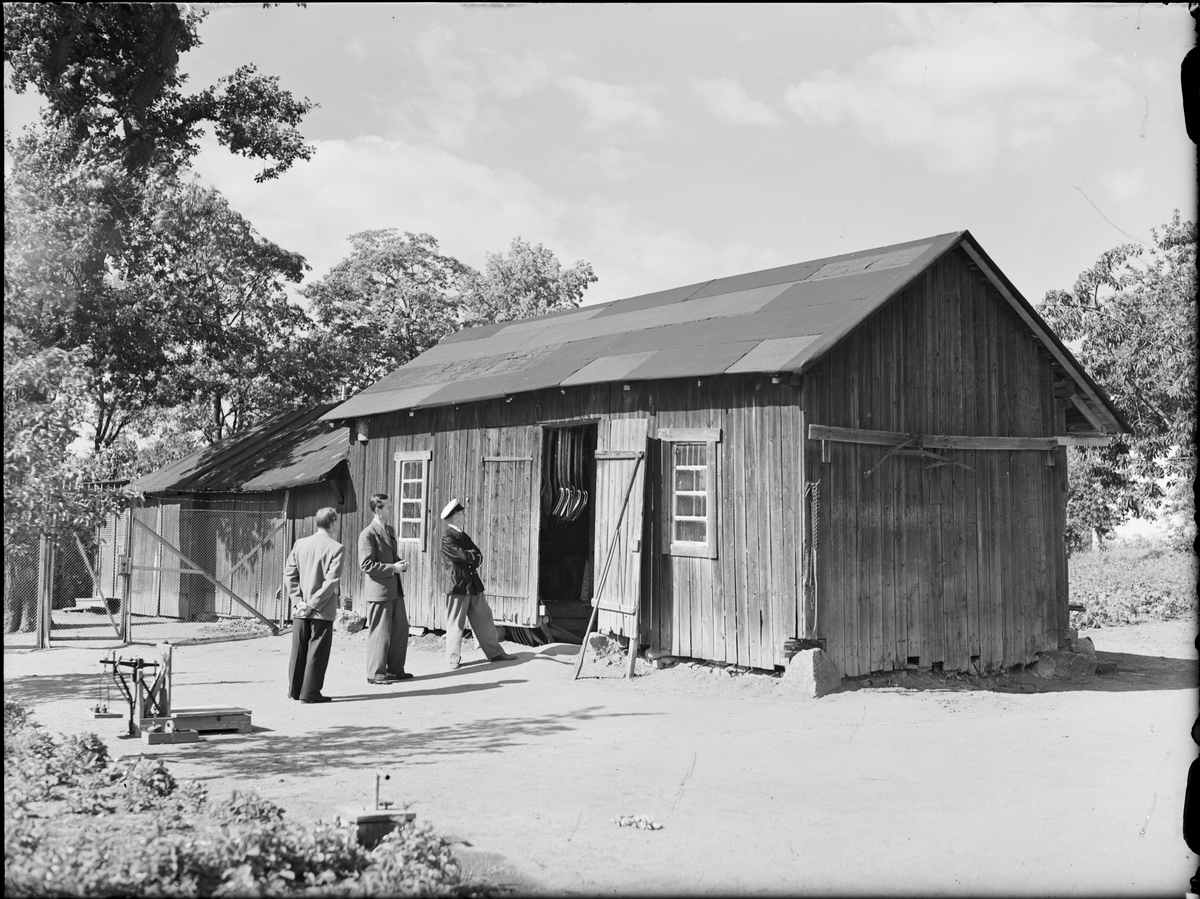 Tre män vid ekonomibyggnad, Uppsala fängelse 1948