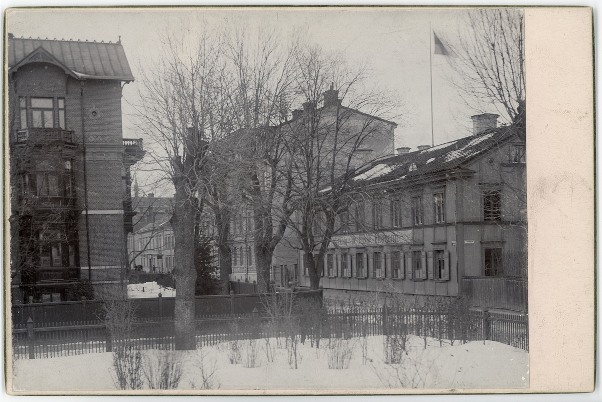 Kabinettsfotografi - Fackskolan, Trädgårdsgatan - Slottsgränd, Uppsala 1902