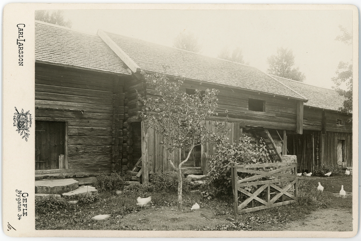 Kabinettsfotografi - höns vid ekonomibyggnad, Fäcklinge, Tierps socken, Uppland