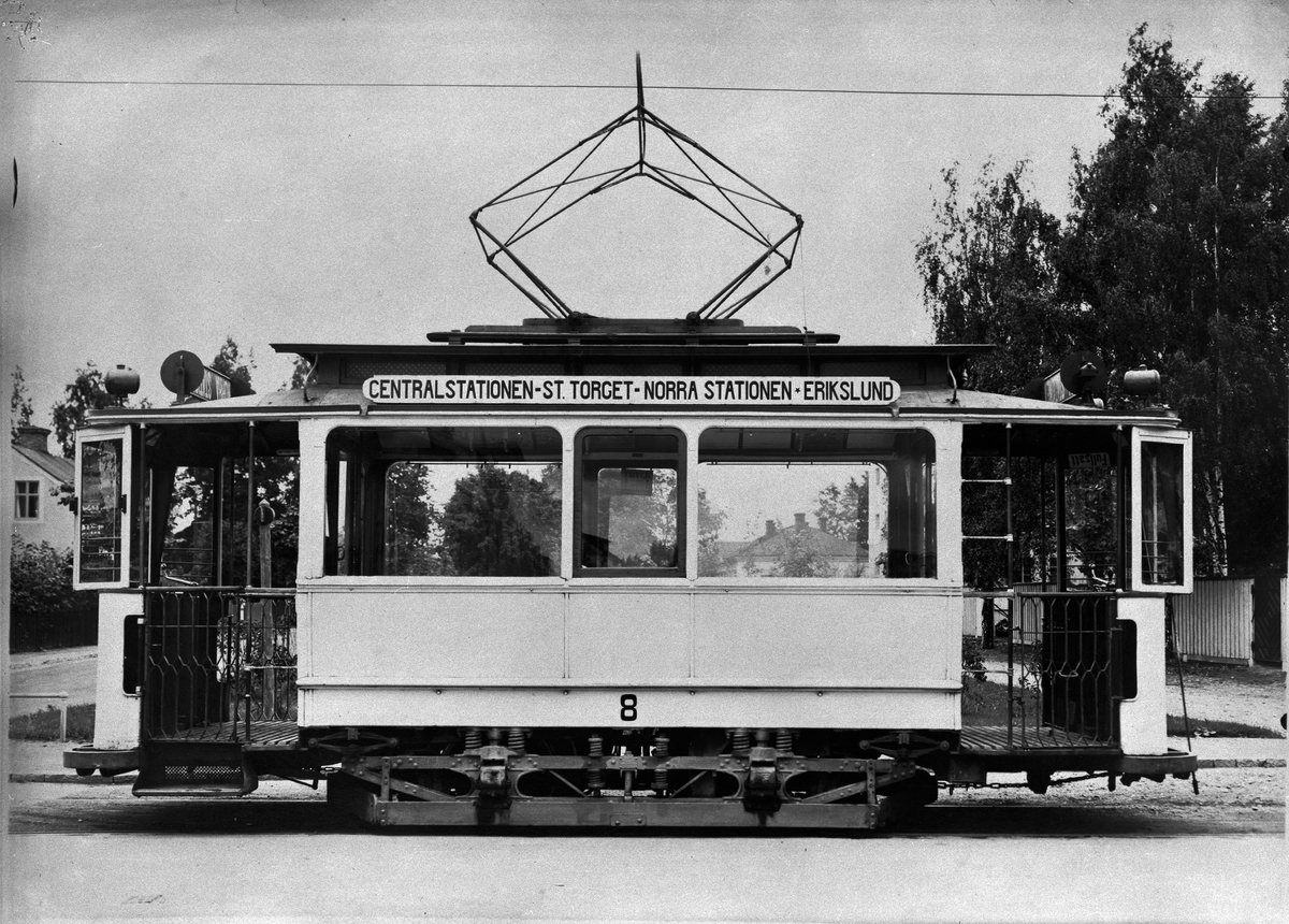Spårvagn på Sysslomansgatan vid Ringgatan, Luthagen, Uppsala 1944