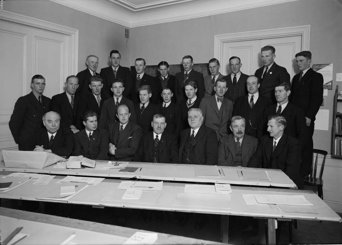Grupporträtt - medlemmar i Svenska Landbygdens Studieförbund, sannolikt Uppsala, 1938