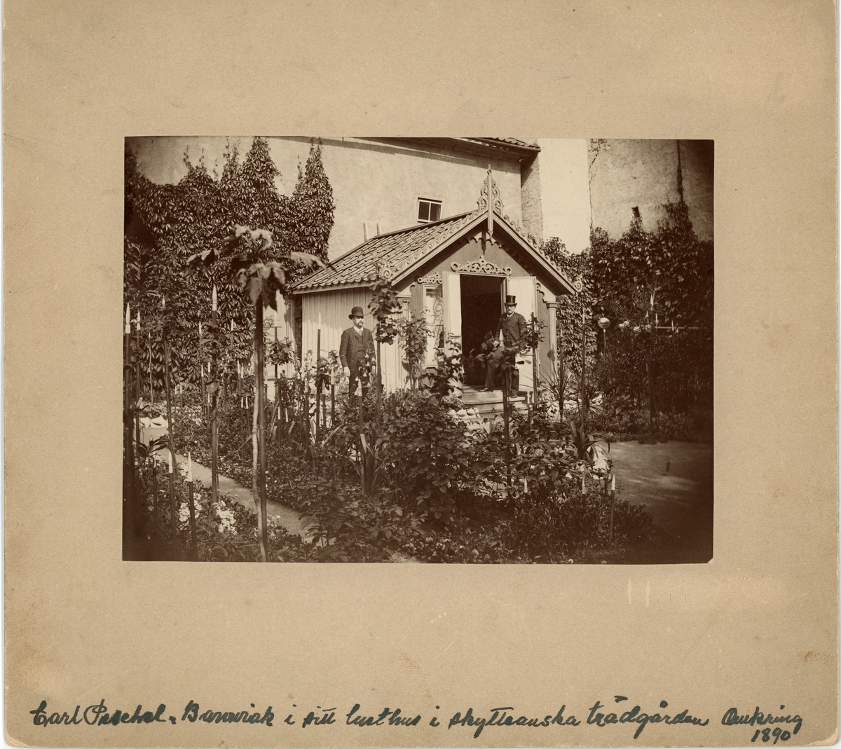 Carl Peschel-Barowiak i sitt lusthus i Skytteanska trädgården, Uppsala omkring 1890