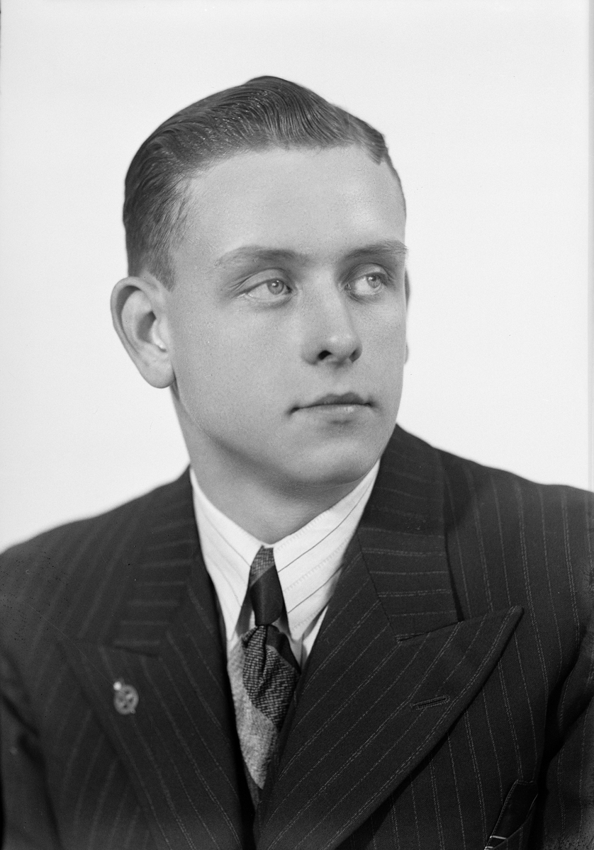 Ateljéporträtt, sannolikt G Pettersson, Rasbo, Uppland 1945