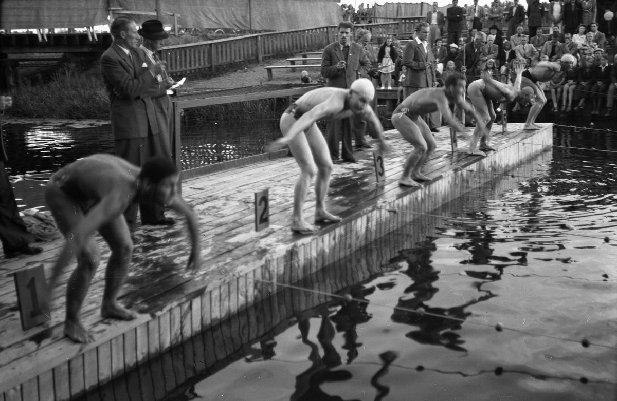 Simtävling med finska gäster, Fyrisån, Uppsala 1945