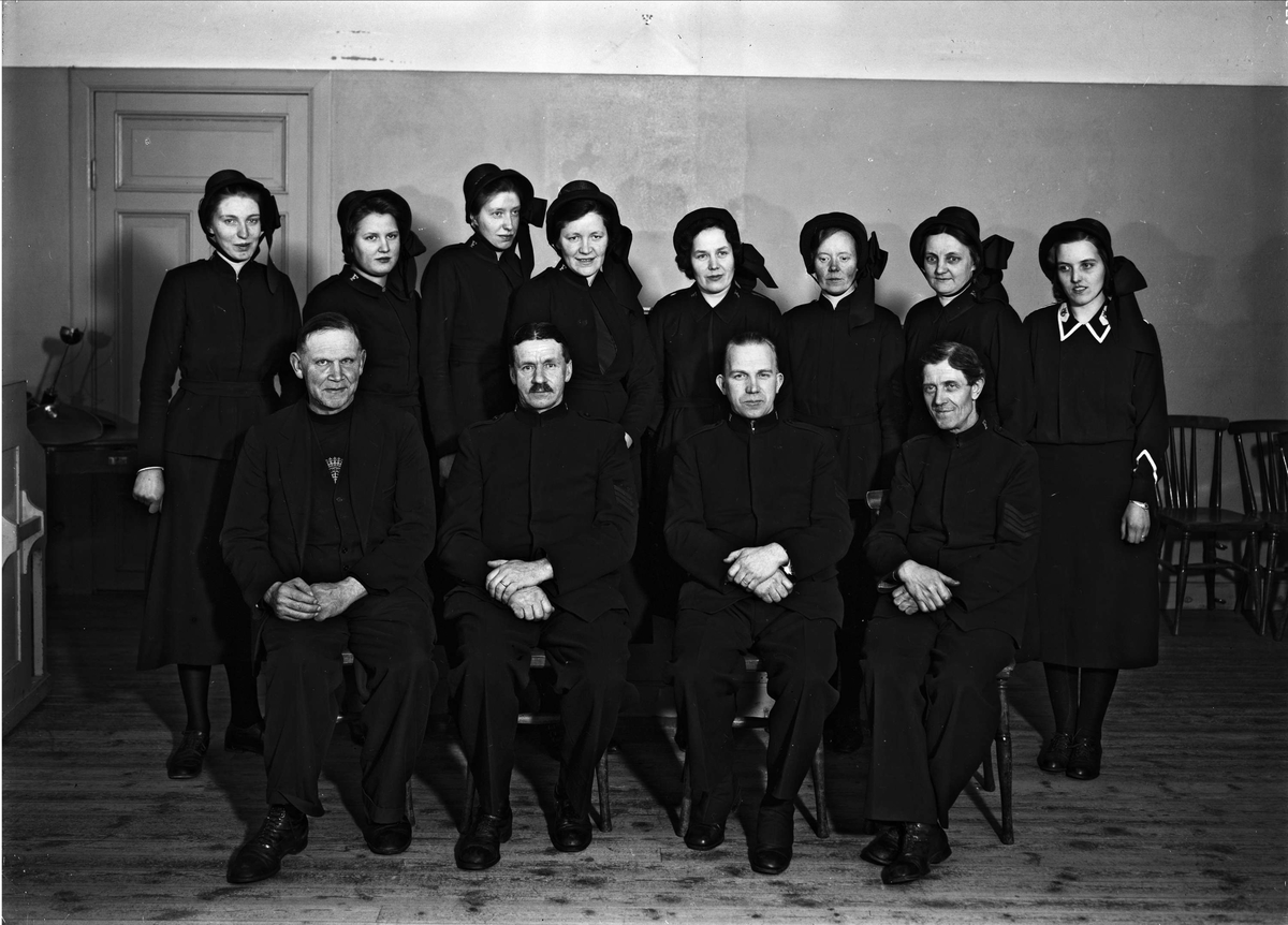 Grupporträtt - frälsningssoldater, Uppsala 1943