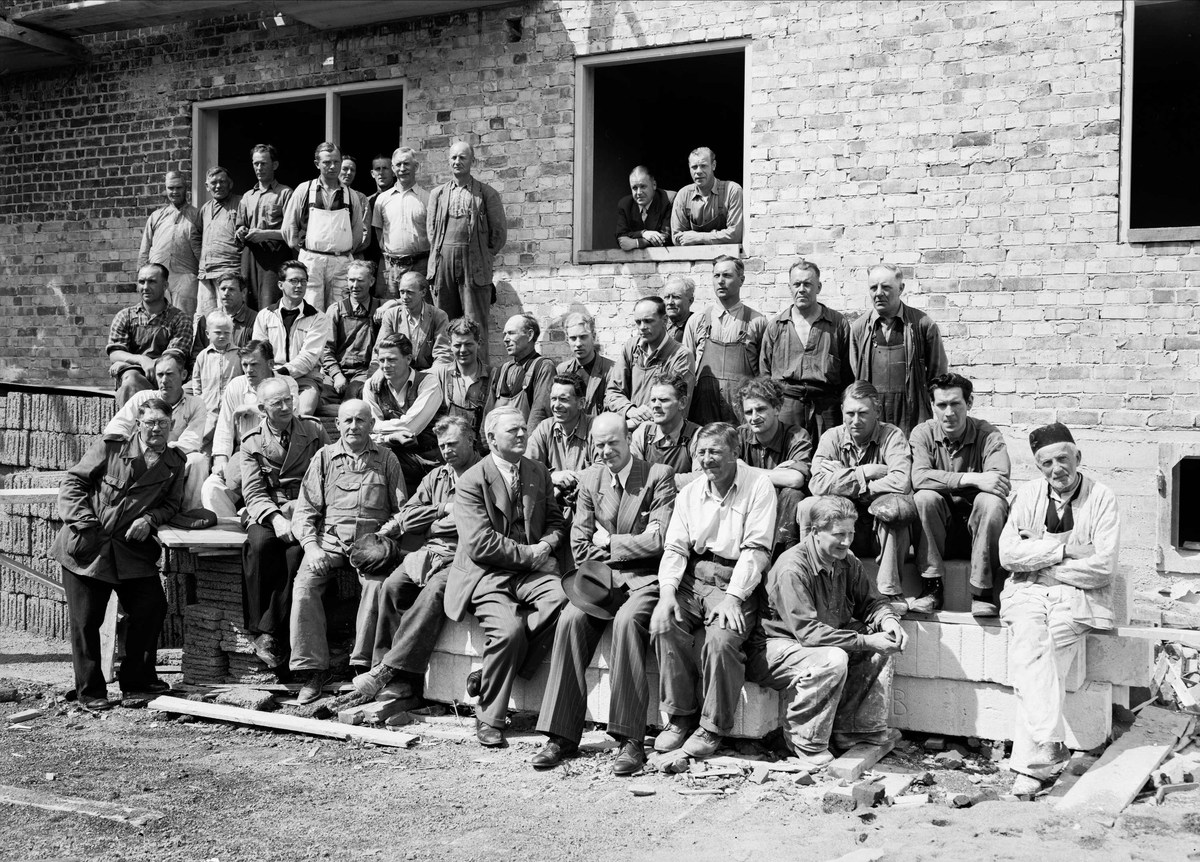 Grupporträtt - byggnadsarbetare, Uppsala 1943