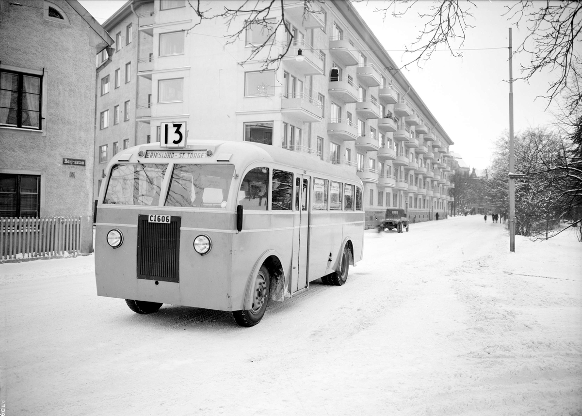 Buss på Börjegatan, Luthagen, Uppsala 1938