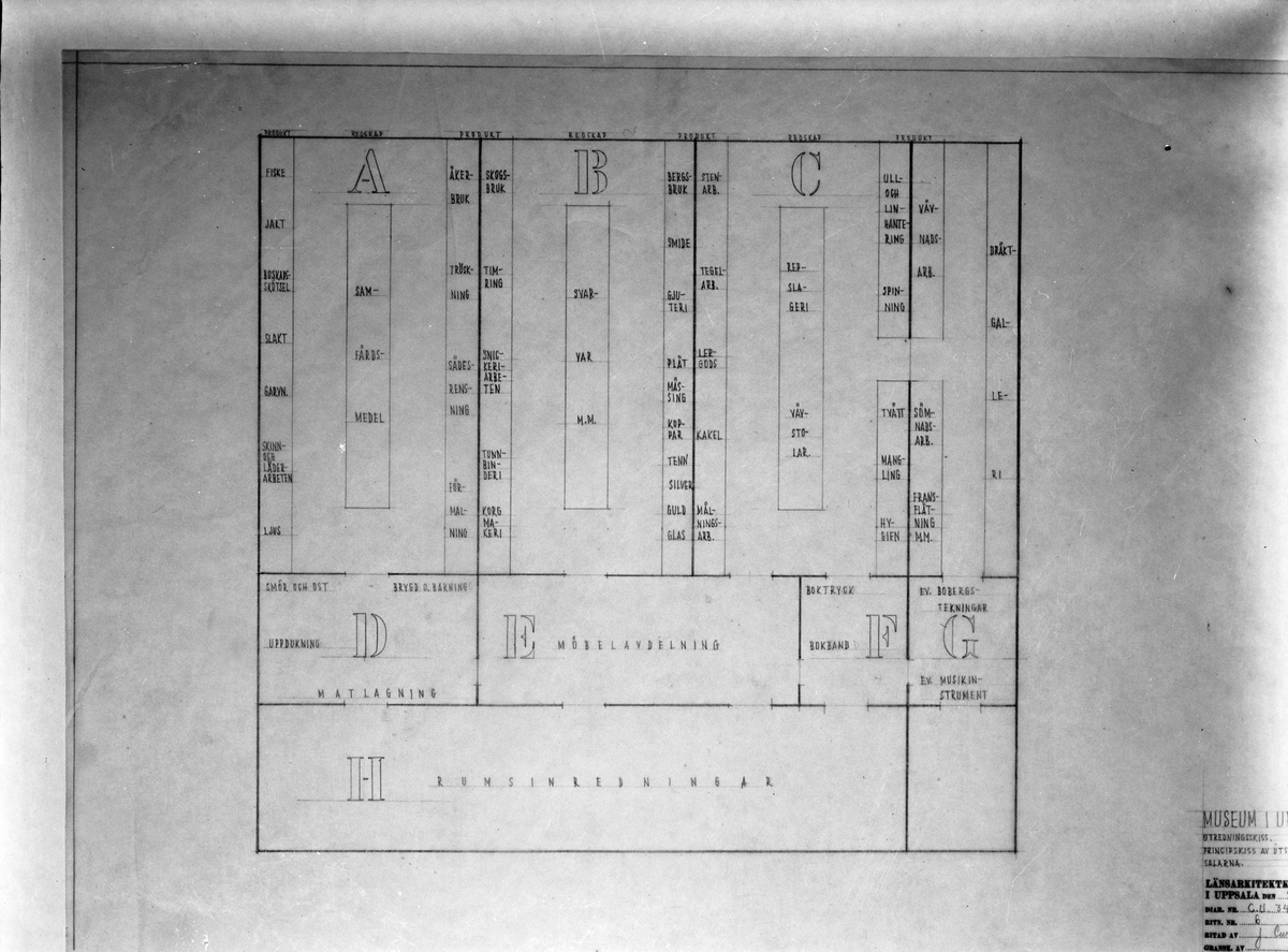 Ritning - utställningssalarna i museum - sannolikt Upplandsmuseet, Uppsala 1939
