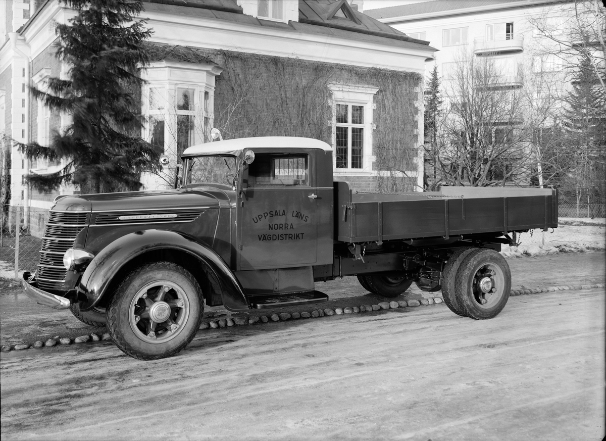 Lastbil tillhörande Uppsala läns norra vägdistrikt, Uppsala januari 1938
