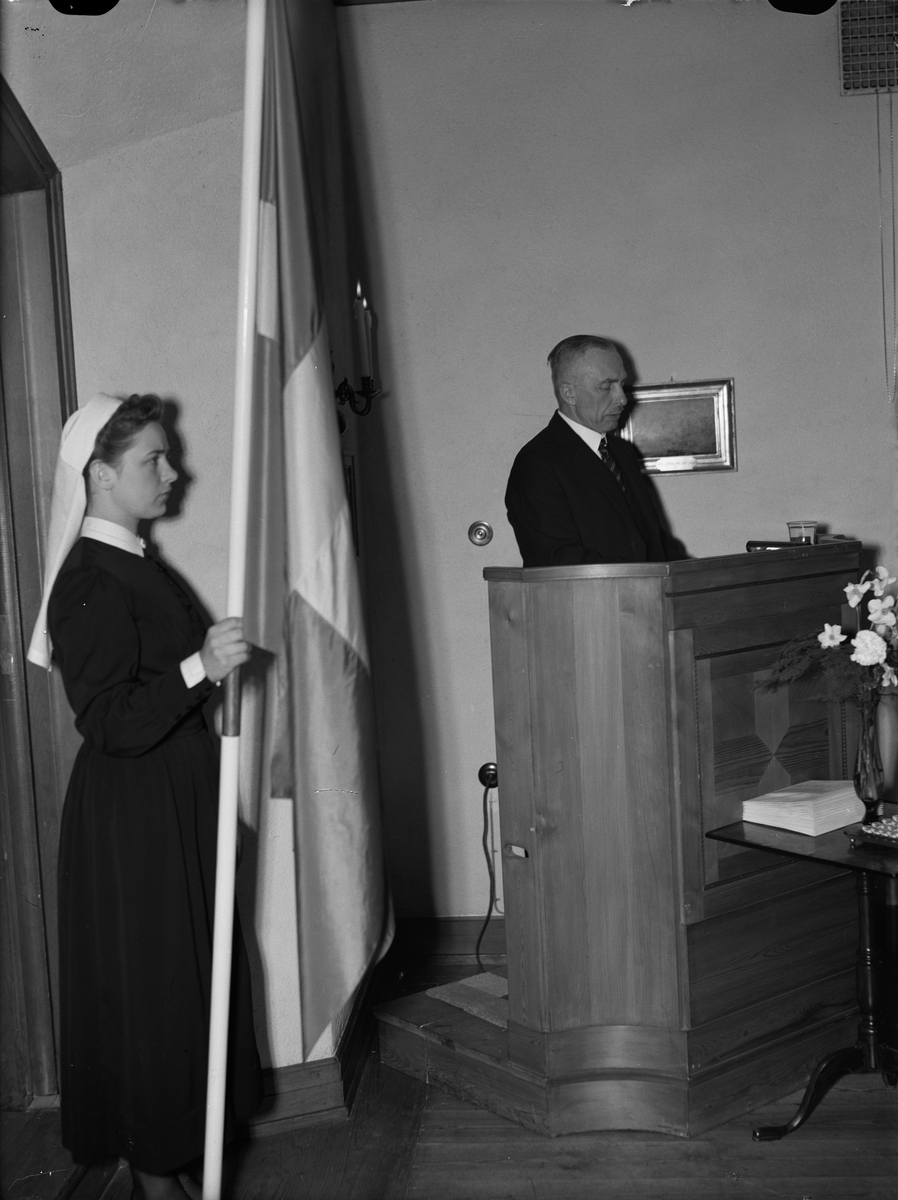 "Sjuksköterskeinvigning vid Akademiska sjukhuset. 37 nya systrar mottogo broschen", Uppsala 1944