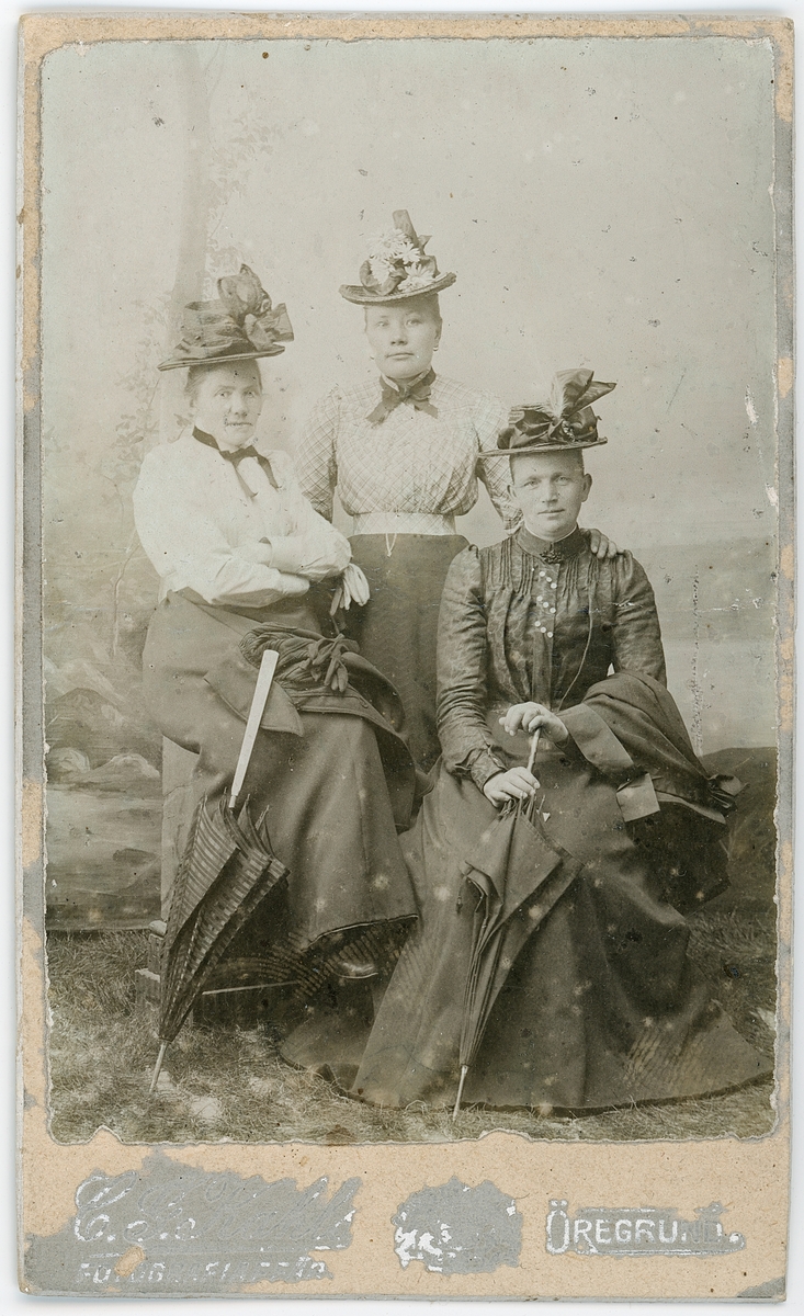Kabinettsfotografi - tre kvinnor i hatt, Öregrund