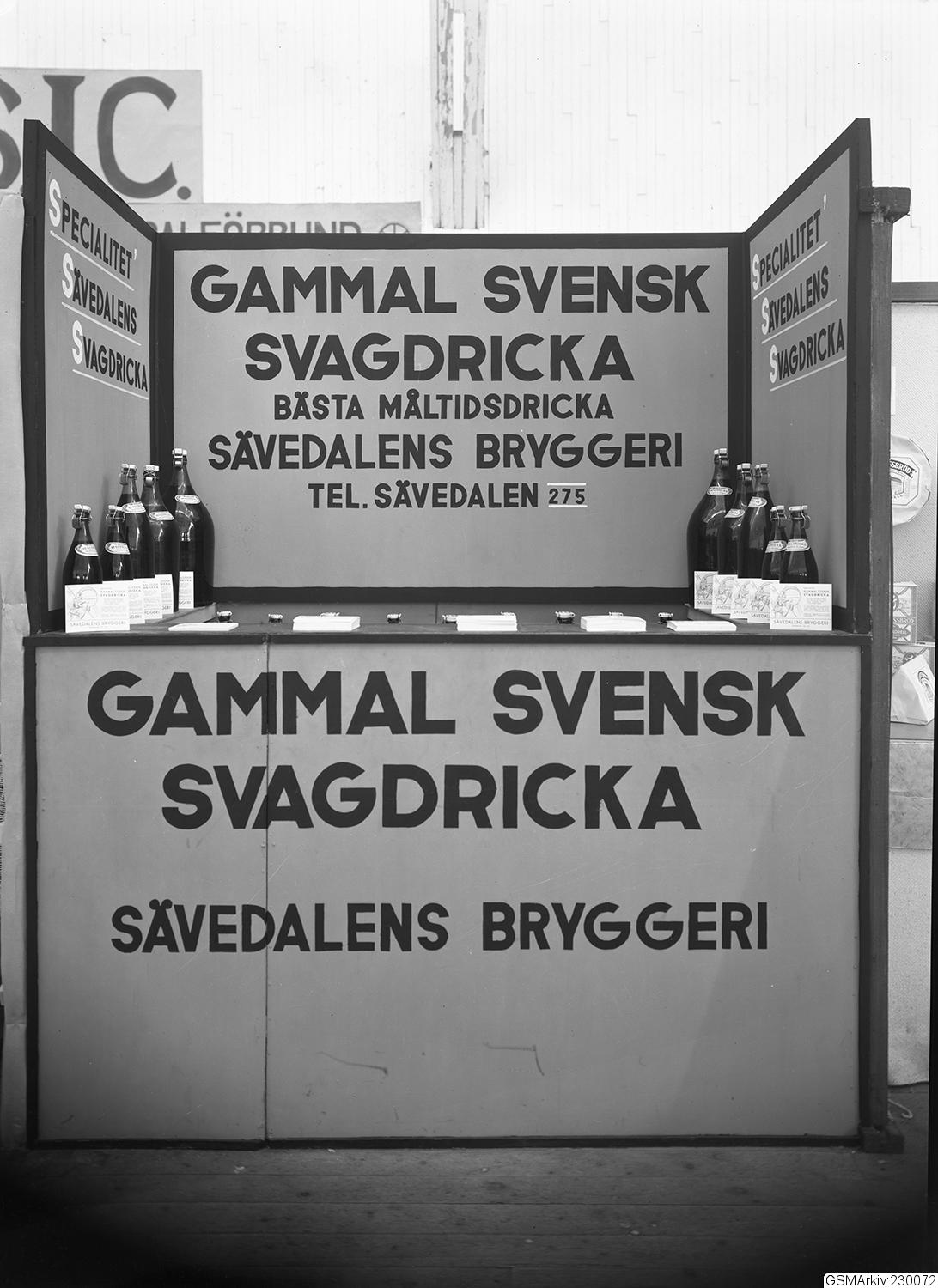 Svenska Mässan vid Korsvägen, utställare Sävedalens bryggeri med Gammal Svensk Svagdricka