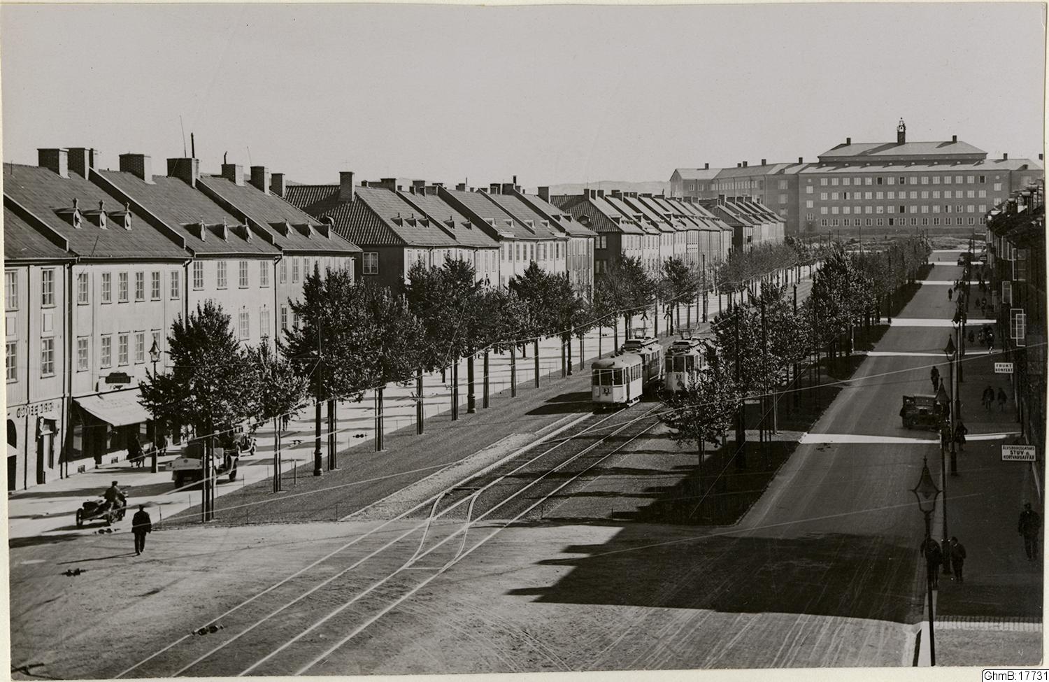 Sträckningsbild längs Älvsborgsgatan mot söder. I fonden Kungsladugårdsskolan.