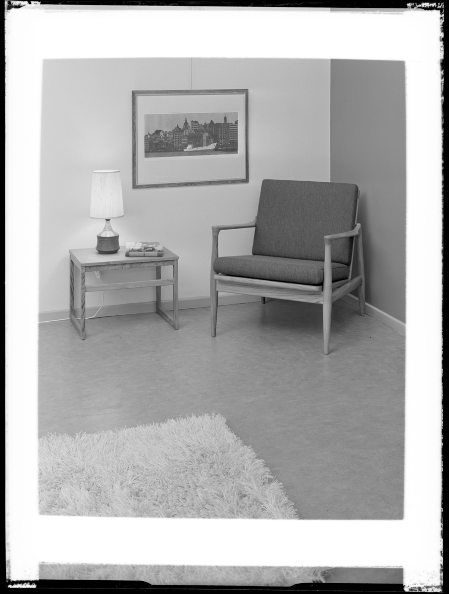 Titel: LINOLIUMMATTA MED STOL OCH LITET BORD