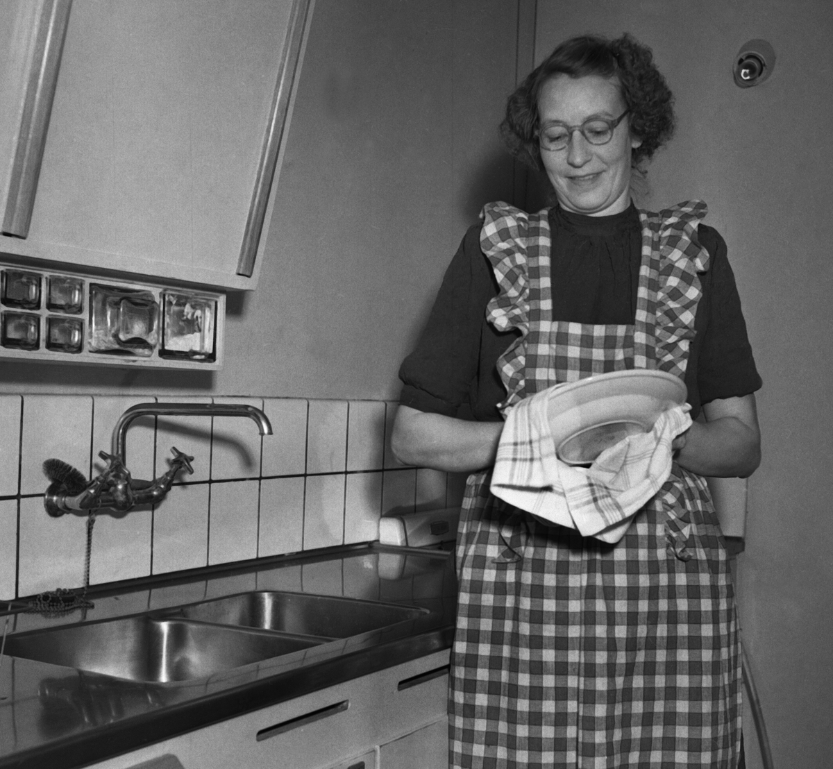 Anna Hjelm i köket berättar om glädjen över sitt kylskåp