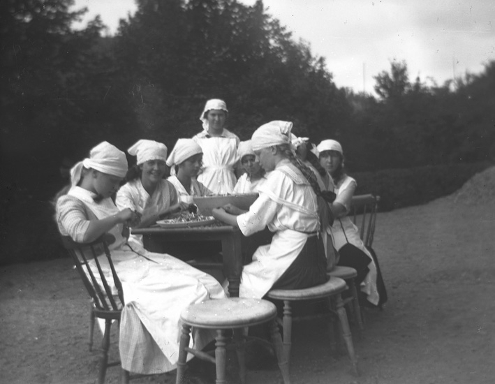 Skolkökselever runt ett bord.