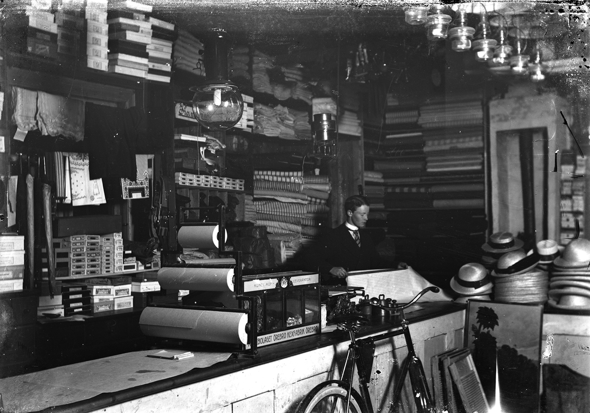 Butiksförsäljning. Handelsboden i Karl Gustav drevs av Vilhelm Sikén. Han hade byggt huset 1898. 1910-tal. Vilhelmsberg.