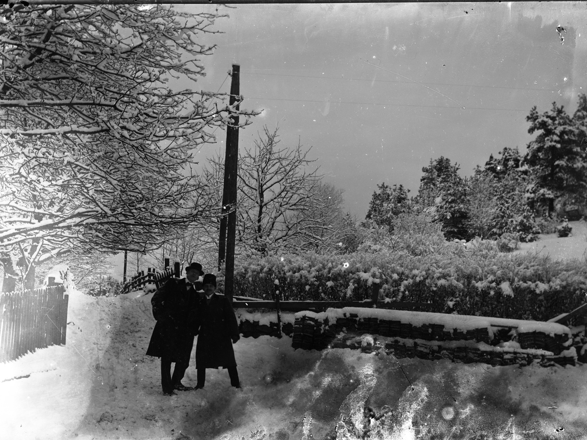 Porträtt av två män fotograferade utomhus. Snöbild.
