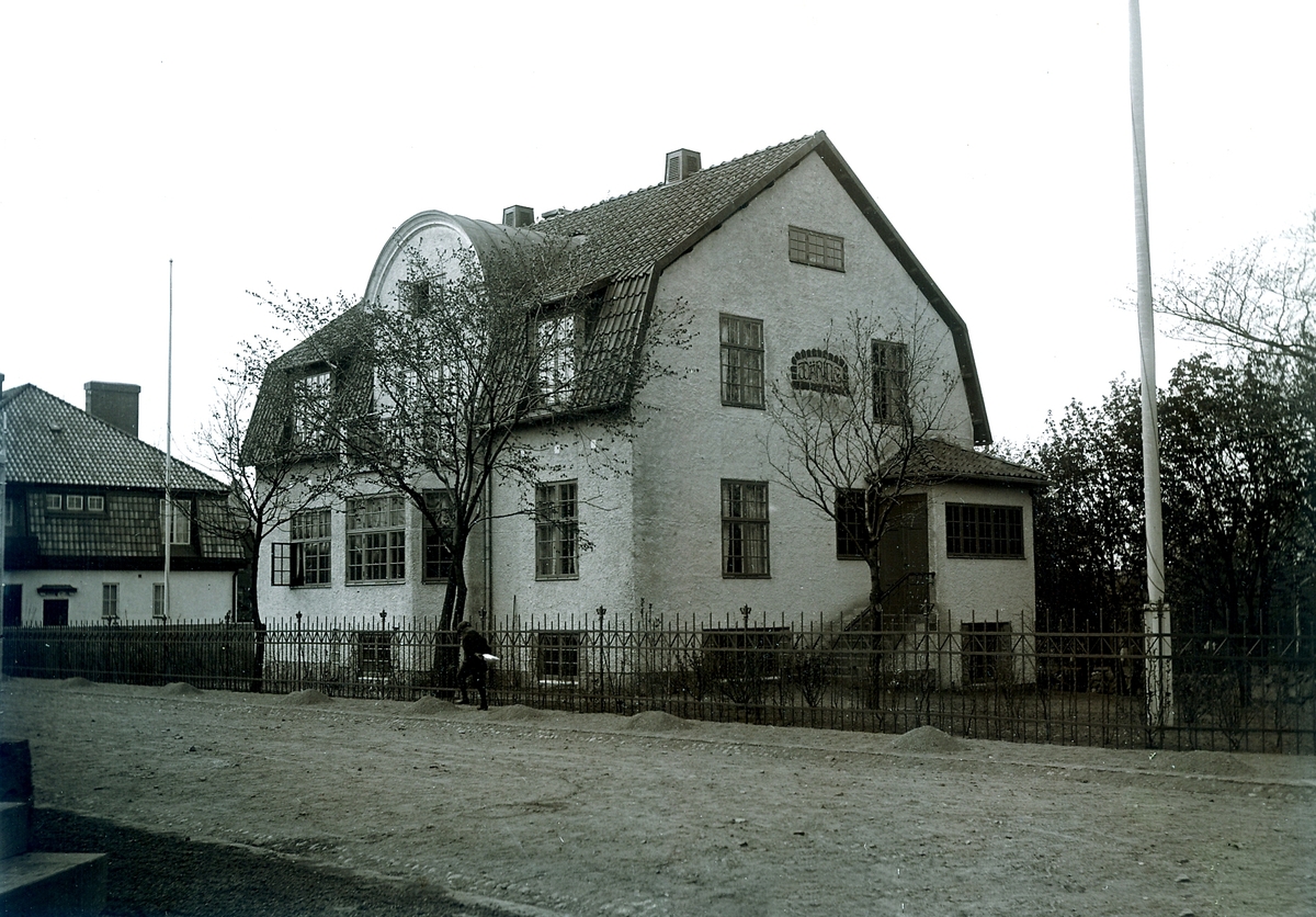 Ur byggmästare Johannes Nilssons fotoalbum från 1914. Villa Wäring på Kungsgatan 36 i kv Kronofogden uppfördes 1913 åt Henning (1870-1948) och Lovisa (1871-1963) Holmberg. Husets namn kommer sig av att Henning var från orten Väring, norr om Skövde. Lovisa kom från Tyllered utanför Tvååker. Arkitekt var Gottfrid Ljunggren och Villa Wäring stannade inom släkten till år 2015.