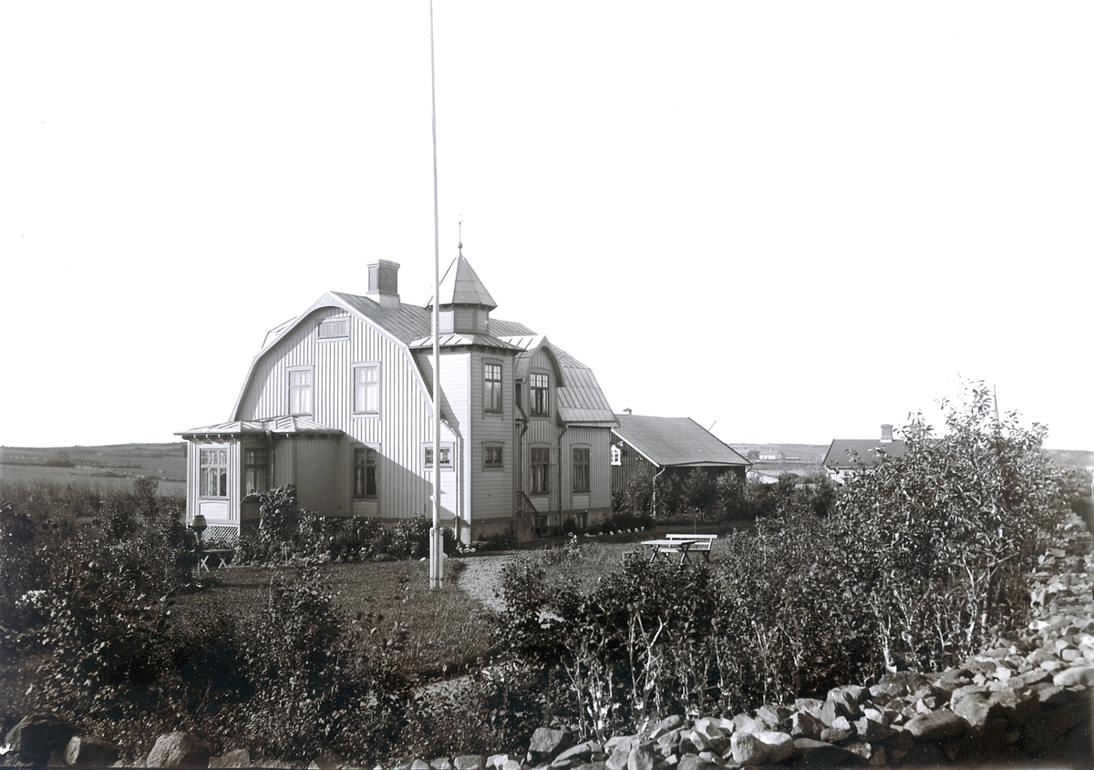 Ur byggmästare Johannes Nilssons fotoalbum från 1914. Mariedals gård vid Danska Vägen i nuvarande kv Forellen. Huset uppfördes 1911 och ritades av arkitekt Gottfrid Ljunggren. Beställare var trädgårdsmästare August Sandgren. Bilden är tagen mot väster och som synes var omgivningarna då helt rurala. Till höger ur bild går Danska vägen och på andra sidan ligger Påskberget. Sandgrens