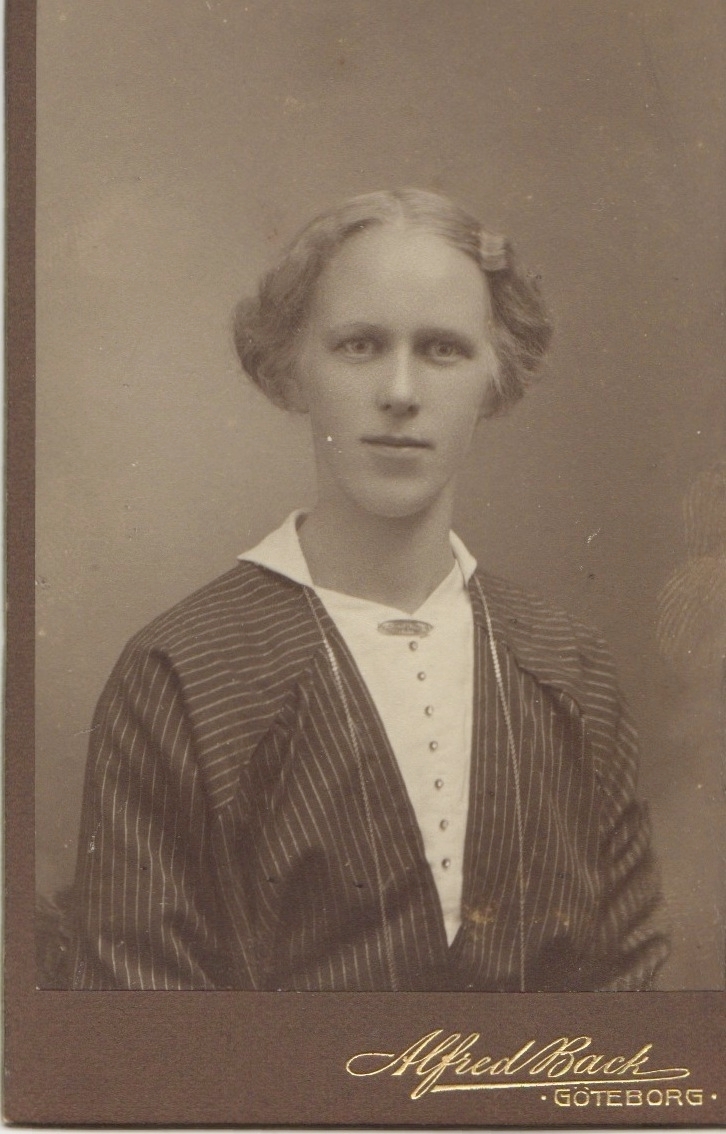 Ateljéporträtt av Rut Johansson (1894 - 1962) år 1916. Gift med Natanael Bengtsson i Långåker 1:3. Hennes föräldrar ägde Labacka Lund.