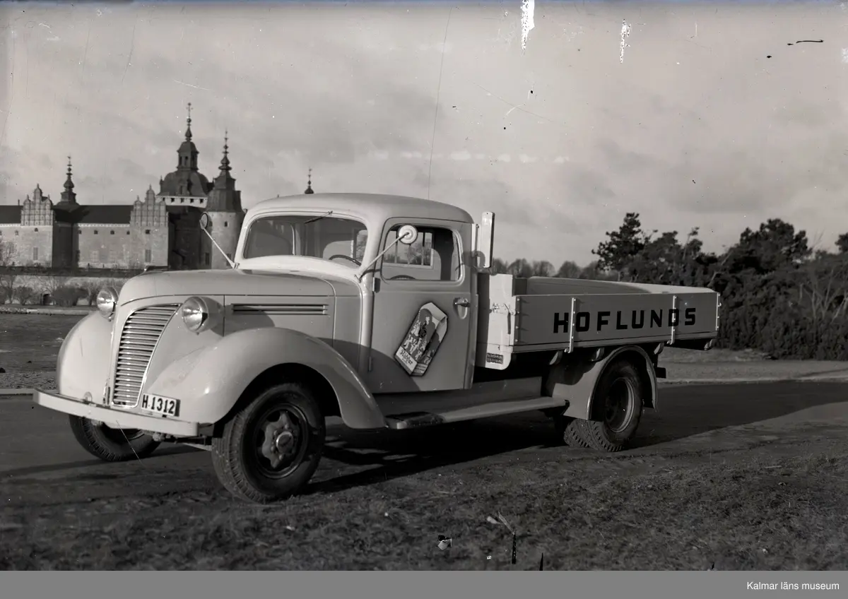 Lastbil från Hoflunds kolonialvaror framför Kalmar slott.