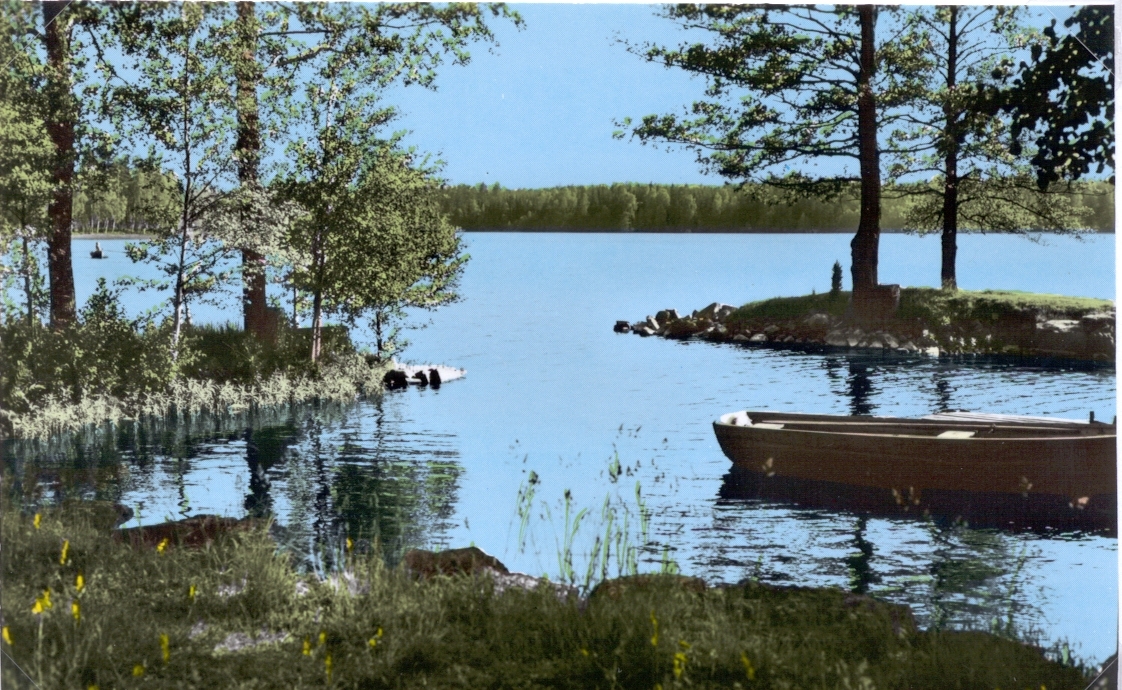 Titel: Vy av insjö, okänd ort. Möjligen Orranässjön i Hälleberga s:n.