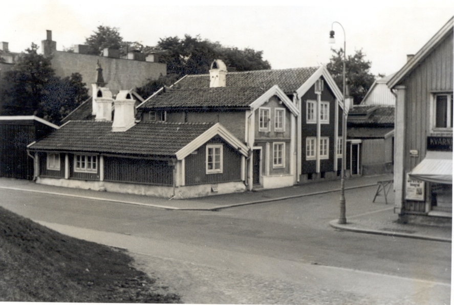 Titel: Tripp-trapp-trull, tre små hus som bevarats på västra Kvarnholmen där annars merparten av bebyggelsen är sentida.