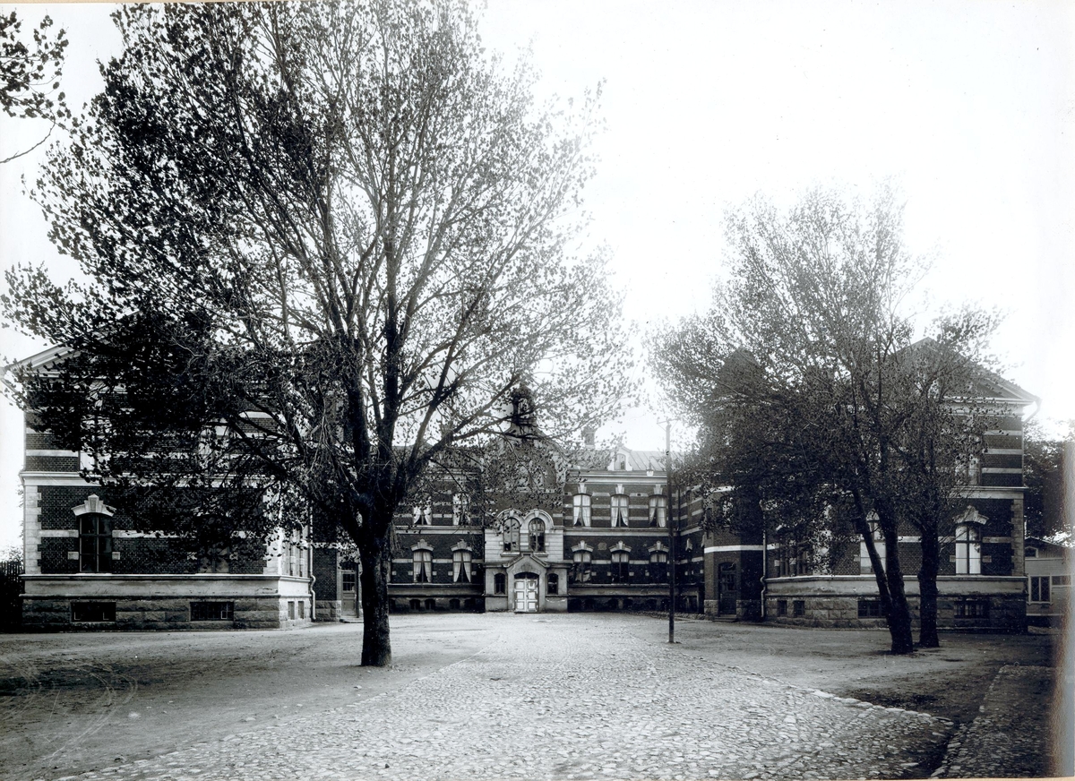 Ålderdomshemmets baksida som skulle varit framsidan. Ålderdomshemmet Falkenberg, numera studentbostäder.