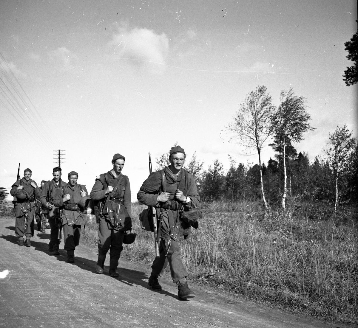 Soldater från Hälsinge Regemente, I 14, ute på marshering