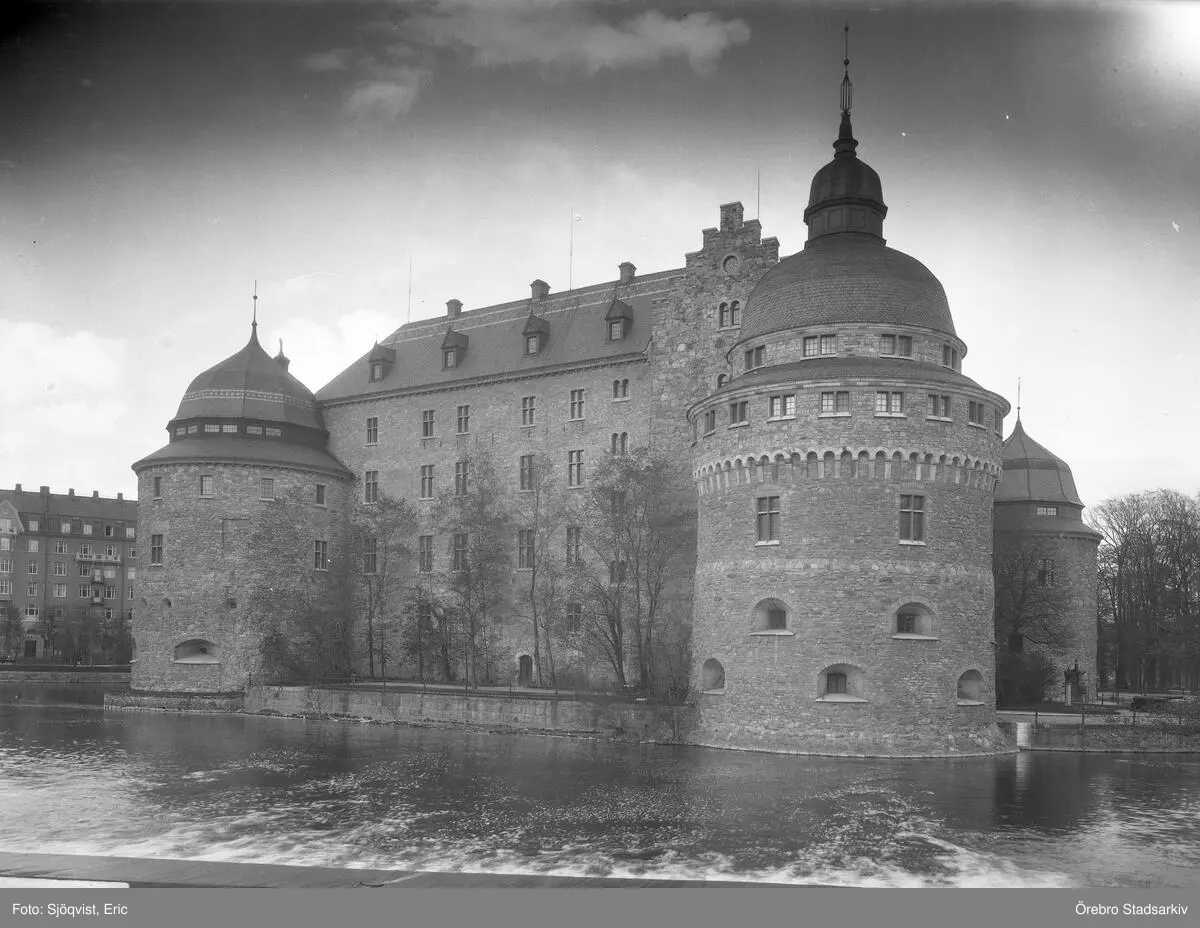 Örebro slott mitt i Svartån, sett från Storbron, 1930-tal