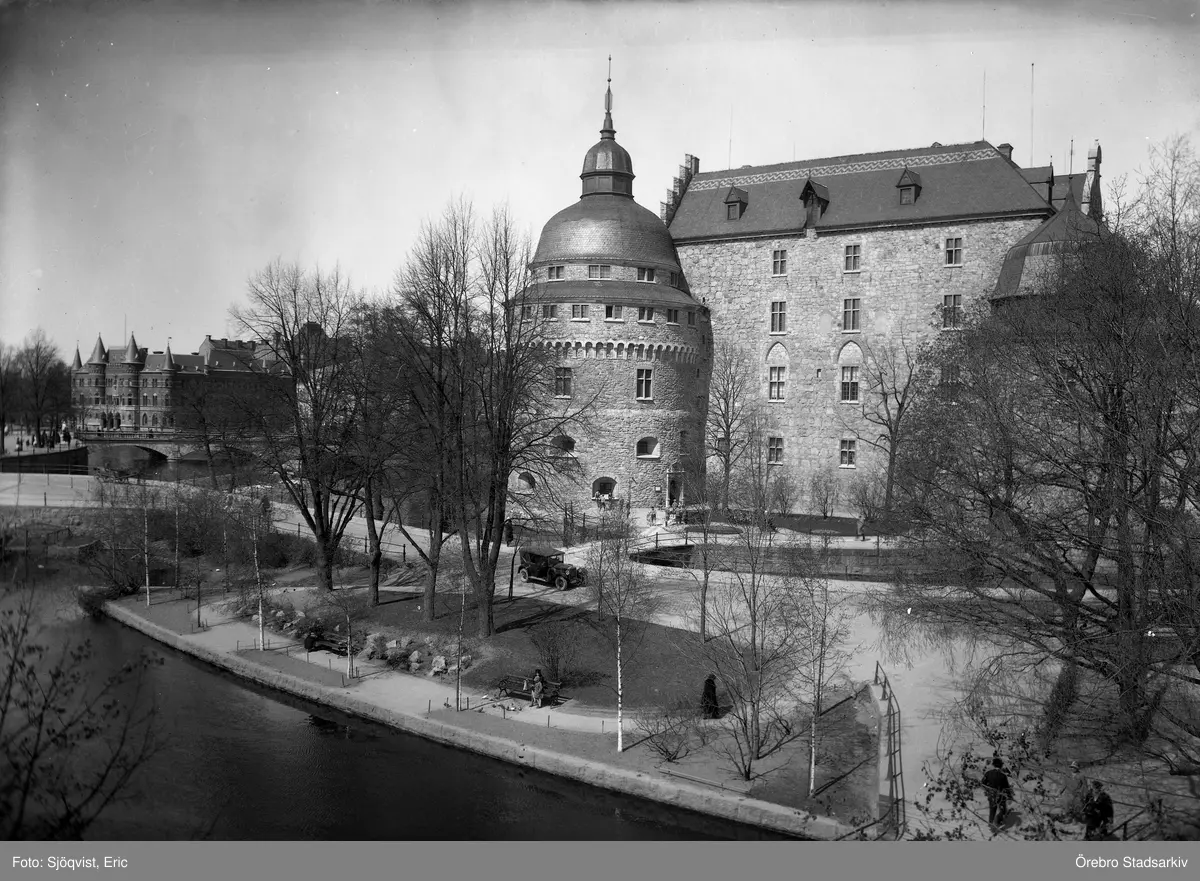 Vy över besökare i Slottsparken och Örebro slott, 1930-tal