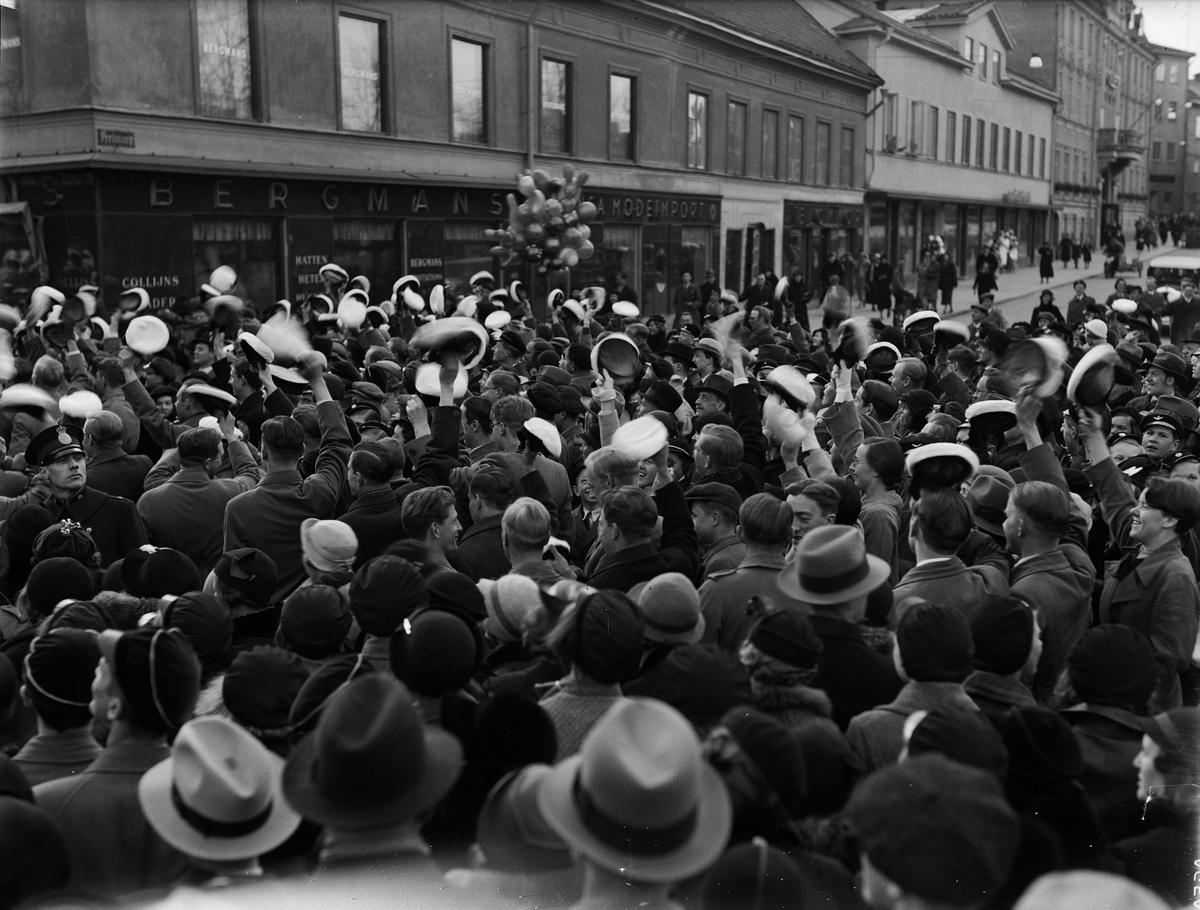 Sista april-firande, Drottninggatan, Uppsala 1935