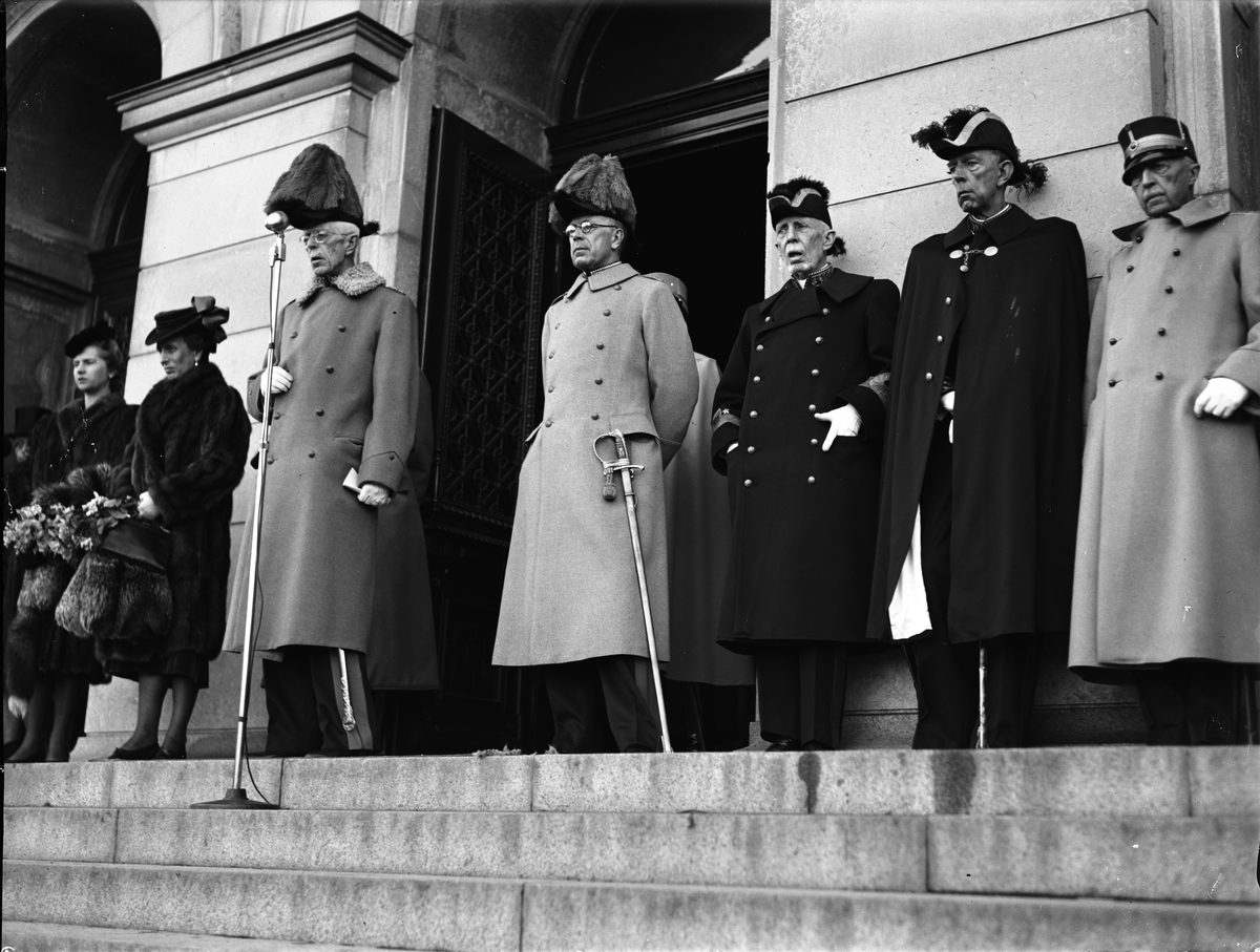 Titel: "Konung och folk hylla det moderna Sveriges grundare", Uppsala 1944