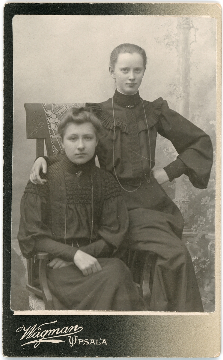 Kabinettsfotografi - två kvinnor klädda i svarta klänningar, Uppsala